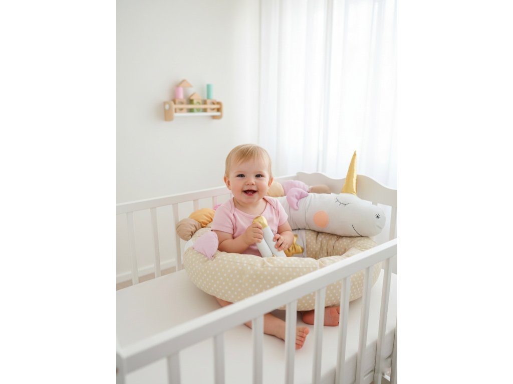 Vankúšik sa dá využiť ako mantinel do malej ale i veľkej postieľky. No slúži aj ako hračka alebo tehotenský vankúš.