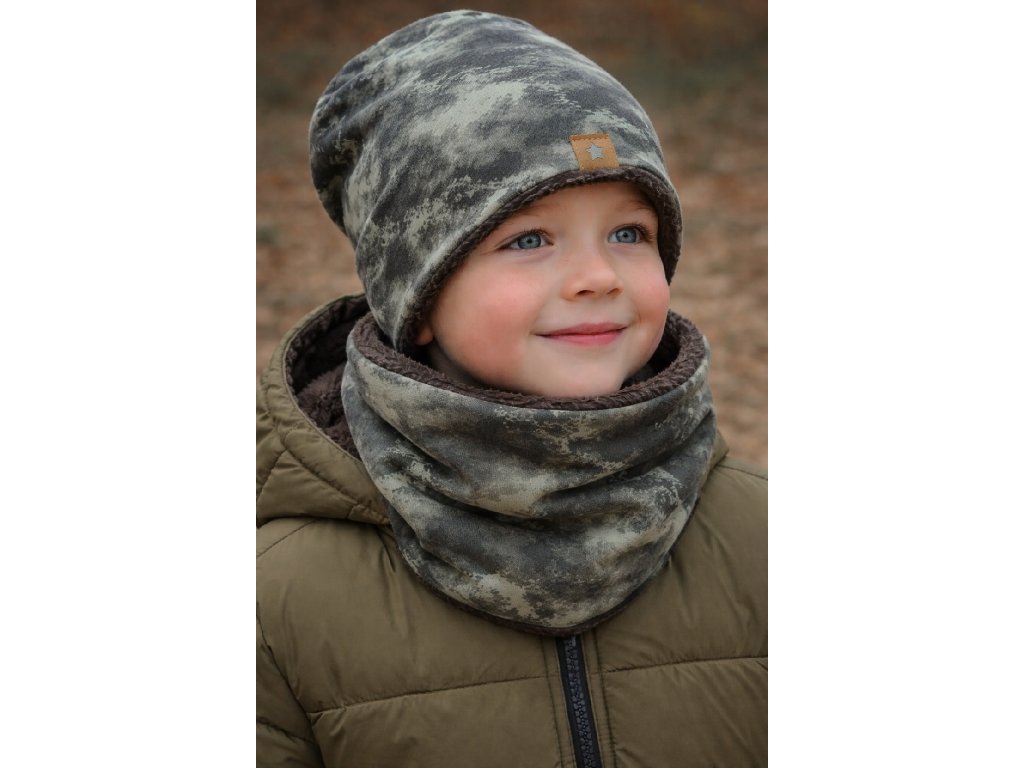 Detská zateplená dizajnová čiapka s nákrčnikom.